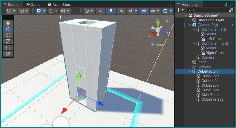 Touchez le bouton avec le contrôleur et appuyez sur la gâchette pour créer un nouveau cube