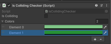 La principale différence est qu'il expose maintenant sa variable booléenne isColliding à d'autres objets. Cette variable est définie sur True chaque fois qu'elle est en collision, et False lorsqu'elle ne l'est pas, tout en changeant de couleur en même temps.